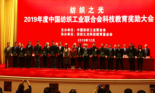 12月6日“纺织之光”2019年度中国纺织工业联合会科技教育奖励大会在人民大会堂隆重召开。会上发布并表彰“纺织之光”2019年度中国纺织工业联合会科学技术奖、教育教学成果奖、教师奖、学生奖、针织内衣创新贡献奖、全国纺织行业技术能手,通报表扬全国纺织行业技能人才培育突出贡献奖单位,发布并表彰中国纺织行业专利奖,并对2019年度纺织行业重点实验室、纺织技术创新中心进行授牌。